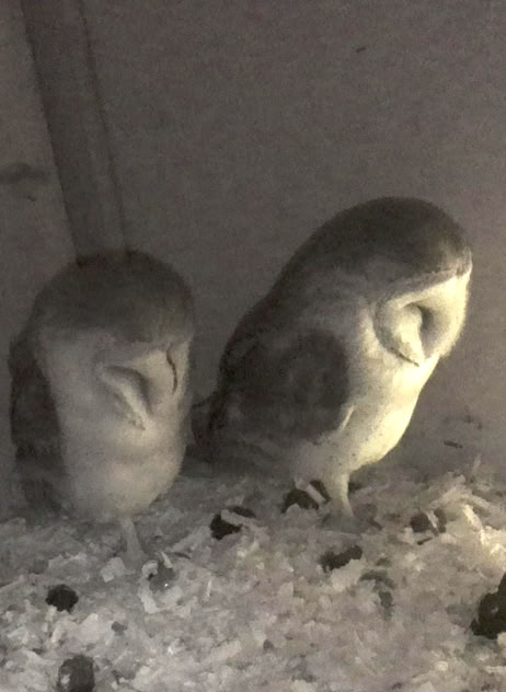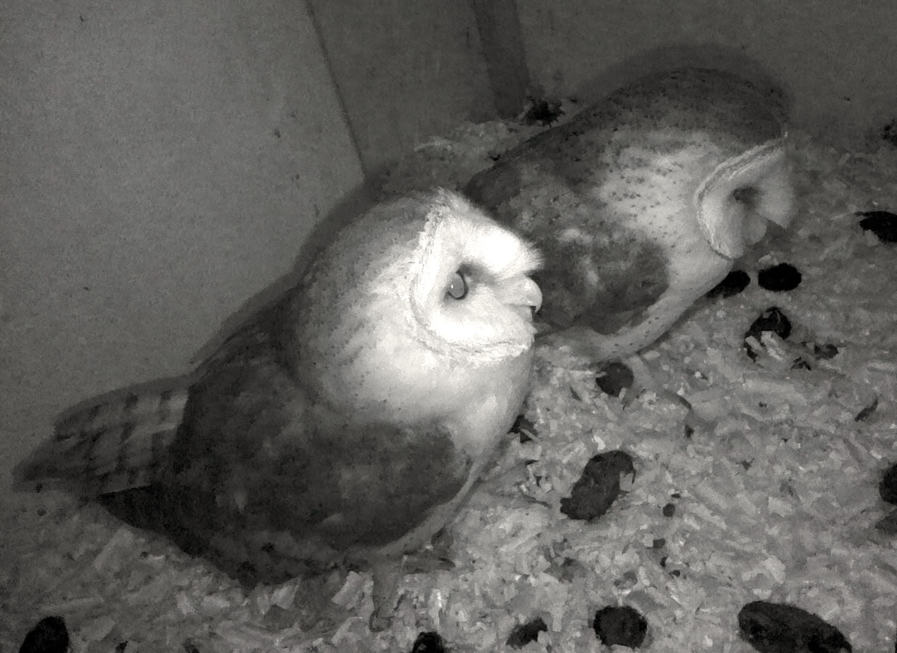 Schleiereulenpaar aufgenommen am 04.05.25 im Nistkasten mit der Eulen-Webkamera.Foto G.Geier 2025