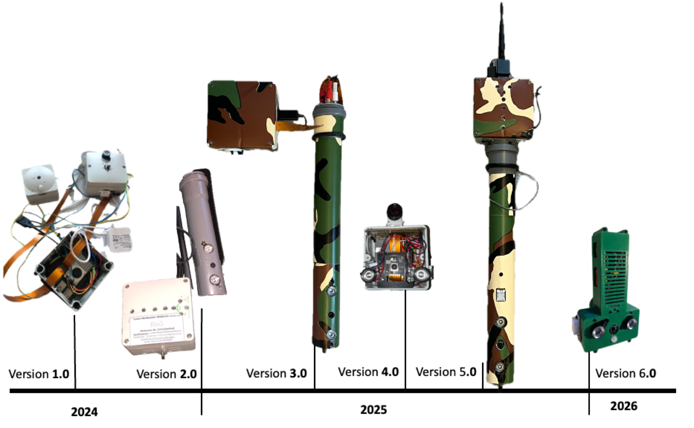 Die Abbildung zeigt die verschiedenen bisher gebauten Kameramodelle: